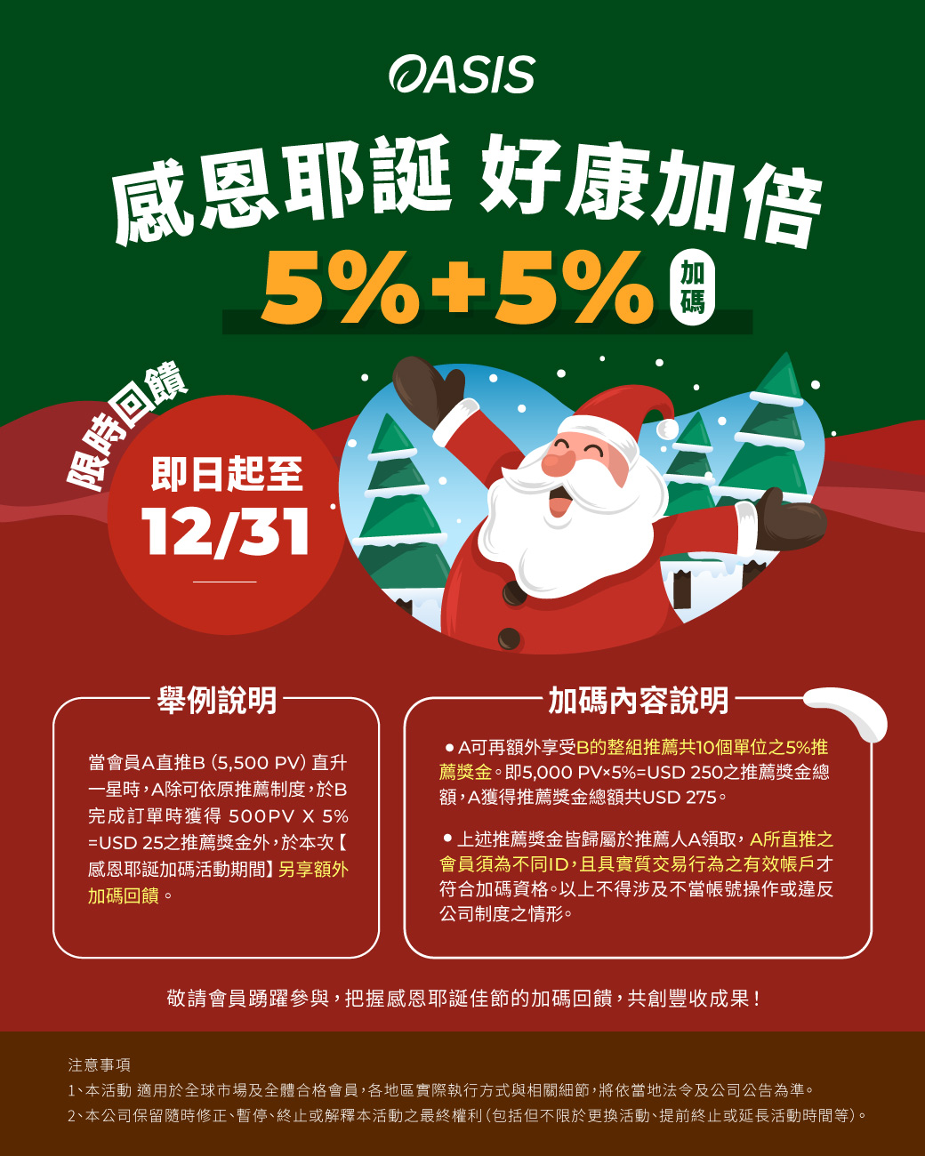 【公告】感恩耶誕·好康加倍!5%+5%限時回饋
